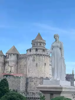 Ba Na Hills is like stepping into a fantasy world high above the clouds! Just 45 minutes from Da Nang, this mountain resort blew me away. I took one of the longest cable cars in the world 🚡, gliding over lush green forests with jaw-dropping views below. At the top, I walked across the famous Golden Bridge 🌉 held by two giant stone hands – it felt magical! The French Village 🏰 made me feel like I was in Europe, with charming buildings, bakeries, and live street performances. Don’t miss the Fantasy Park 🎢 for fun indoor games and rides!