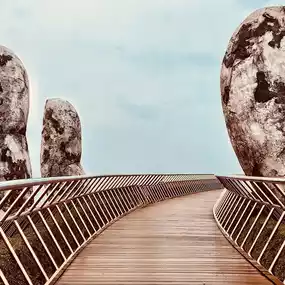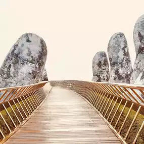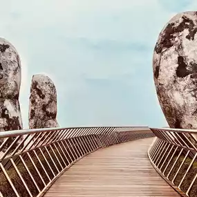 Perched **1,400m above sea level** in the **Ba Na Hills**, this **150m-long golden pedestrian bridge** appears to be lifted by two colossal stone hands—a surreal blend of nature and fantasy that’s become Vietnam’s most Instagrammed landmark!
