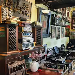 🍵 Let's head to a cute little cafe nestled in a small alley in Da Nang. This cafe is called NAM House. I have to say that this might be one of the most popular cafes in Asia, and my friend is one of them. 😄😆 The first time I stepped into this cafe, I felt so peaceful and relaxed. I also loved the decor. It looks like a beautiful old building with harmonious decorations. It felt like I was visiting my grandmother's house. 🥰🥰 When we first arrived, almost every seat was full, proving its popularity and unique decor. Every nook and cranny is filled with antiques and local souvenirs. There are two floors, allowing customers to enjoy the peaceful atmosphere, perfect for sipping coffee. The upper floor is open, with comfortable seating and even fans for cooling. The staff are friendly and helpful, especially since there aren't many tourists here. It seems like they're mostly locals.