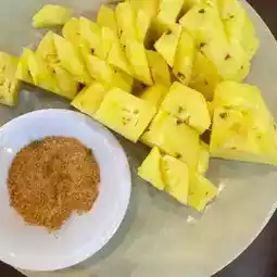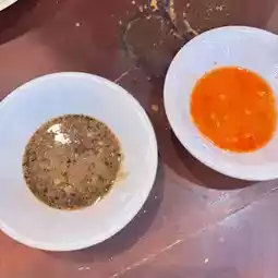 We got some chilled mango slices with chili salt that tasted like Lao chili.