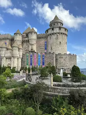 The pink castle corner at Da Nang Bana Hills is now open for everyone to take photos freely. This spot is undeniably very beautiful for photography. If you plan to check the weather first, avoid going during the monsoon season or rainy periods because the sky will be overcast, and no matter how you take photos, they won’t look good.