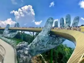 The iconic Golden Bridge, shaped like two hands holding each other, is a must-see. Walking across the bridge, which stretches through the clouds, feels like walking on air. 📸 It's also a popular photo spot, making it a must-see.