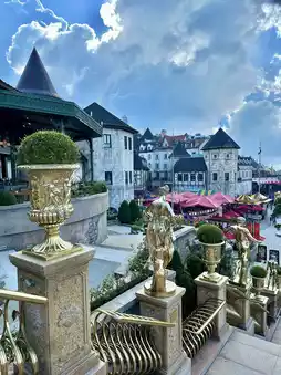 • 🏰 European Charm – The Gothic-style architecture and stone towers transport you straight to a quaint French town.