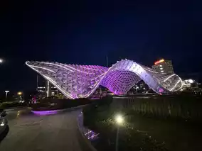 โจ At night, the Dragon Bridge is illuminated with multi-colored LED lights, reflecting on the waters of the Han River, creating a beautiful and romantic scene comparable to that of major European cities. Every Saturday and Sunday at 9:00 PM, a spectacular fire and water dragon show is held. Tourists and locals alike gather here to enjoy the fun, laughter, and smiles.