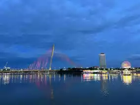 ๐ก Asia Park (Sun Wheel) โ Not far from the bridge, accessible by taxi/Grab In just a few moments, you'll arrive. The highlight is the giant "Sun Wheel" Ferris wheel, which offers a bird's-eye view of Da Nang at night. It's so beautiful you'll want to capture it.