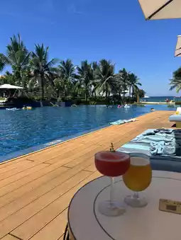 The outdoor infinity pool has a spectacular view, and relaxing with a drink in hand really gave me the resort vibe. ☻