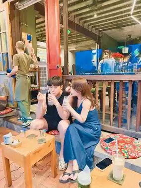 The cafe is divided into two zones: the outdoor area offers a relaxing atmosphere in the garden, but if you're feeling a little more adventurous, there's also an air-conditioned indoor area. The decor is vintage, featuring wood, dark browns, and white accents, creating a minimalist feel. A must-try for photography enthusiasts.