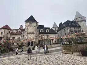 2. French Village and Fantasy Park: A European fairytale mountaintop paradise. The French Village atop a hilltop evokes the architecture of the Seine River, with cobblestone streets and cafés offering a truly romantic experience! 🏰 Fantasy Park features the Alpine Coaster and the Wax Museum, perfect for family fun. Wine tasting at the winery (VND 100,000 per glass) is a treat for adults only. 📷 Photo Tip: Take photos of the village's cobblestone streets and café, adding interactive wax figure shots to create a fairytale atmosphere.
