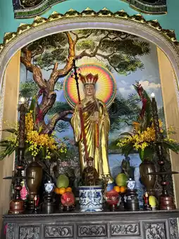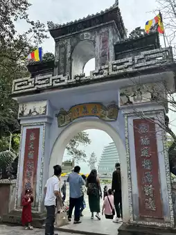 Linh Ung Pagoda on Ngau Hsin is more than just a Buddhist temple; it's a sanctuary where architecture and art blend together. Upon entering the temple, the first thing that strikes your eye is the unique style of brickwork. The thick, steady red bricks and the gleaming, ageless green tiles create a striking contrast in the sunlight, showcasing the uniquely rustic charm of Vietnamese Buddhist temples.