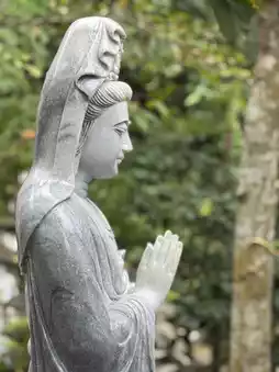One of the most breathtaking artistic sights at Linh Ung Pagoda on Ngu Hanh Son is the stone sculpture depicting the Buddha's First Turning of the Dharma Wheel at Deer Park. This scene, drawn from Buddhist texts, depicts Shakyamuni attaining enlightenment beneath the Bodhi tree and then expounding the Four Noble Truths to five monks in Deer Park. It is considered the official beginning of the Buddhist teachings.