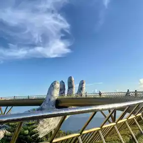 🌉 Golden Bridge (Cầu Vàng) — The iconic golden hand bridge amidst the clouds. This breathtaking sight is a must-see for visitors from around the world. Walking on the bridge, you'll understand why it's a bucket-list destination. It's a view that's both grand and heartwarming at the same time 💛.