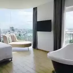 🏩 Our room was spotless. We have no negative comments about cleanliness. While the balcony faces the motorway, with the windows closed, the room is quiet and beautiful, and the view remains excellent. Everything worked as expected: the internet worked, the bathroom drain wasn't clogged, the LG Smart TV, and most importantly, excellent hygiene. The sheets and pillows were spotlessly clean, with a light scent of fabric softener. The bed was very comfortable. The air conditioner was new and clean, very quiet, and provided a good temperature and comfort. The rooftop pool was quite small, but cozy and warm. The view was beautiful. The furniture could use some updating, but you don't have to bring your own furniture to the pool. The infinity pool is beautiful, offering sunset views of the river, the city, and the Danang hills. There's a slight sea view, but this hotel isn't a sea view hotel if you have a car. The location is good, not far from Lotte Mart and not far from the beach. Traffic in this area is usually light, but don't expect much, as there's nothing there. There's no minimart, no shops, nothing. Some people might like this, as it creates a quiet atmosphere. The staff speaks excellent English, which is rare in this city, and they're also very kind and helpful. They even helped me buy something from Shoppe, which is not available in Thailand or Europe. (Because it's not available there yet.) Thanks again, Khun Vee. You've been a great help. Anyway, this is a great place, and the price is very reasonable.