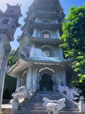Marble Mountains in Da Nang are a sacred site of faith consisting of five small marble hills located south of the city. Within the mountains, you'll find serene temples, naturally formed caves, and mystical spaces where light illuminates Buddha statues in a dreamlike manner.