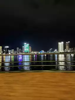Da Nang's iconic dragon-shaped Dragon Bridge is a popular riverside stroll and photo spot during the day. It becomes even more special with the fire and fountain show held every Friday, Saturday, and Sunday at 9 PM. This modern steel and concrete arch bridge, spanning the river, is approximately 666 meters long. Its nighttime illumination and show make it a popular spot for nighttime snapshots.