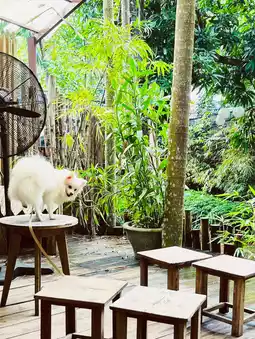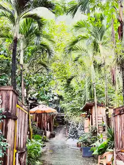 Sip rose latte in a pastel swing seat under cascading wisteria, or enjoy coconut coffee in a floral courtyard where butterflies dance between tables.