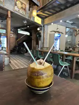 They have a wide selection of drinks that will give you a tropical vibe, including coconut water served in a coconut container. 🥥