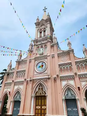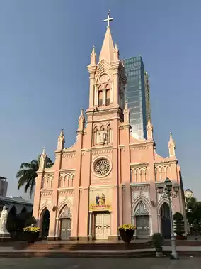 While traveling in Da Nang, Vietnam, I couldn't miss the Pink Cathedral, which was a must-see! It was right near my accommodation and close to Han Market, so I stopped by.