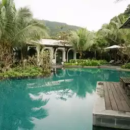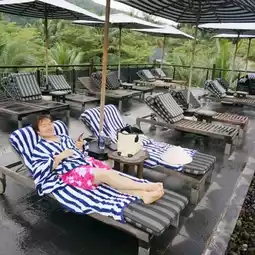 🩴The very long infinity pool for adults is great because it has a wide open view, and the swimming pool for families has a jacuzzi and feels like it's in the jungle, so it's friendly with nature.