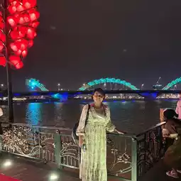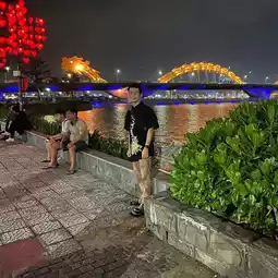 Dragon Bridge, Danang, Vietnam, will cross the Han River. If you look at it during the day, it will be a golden yellow. But at night, it will be decorated with lights and change colors at different times. If you sit on the riverbank, it will change colors beautifully. Most Thai people like to visit and take pictures in this area. It is a very popular place in Danang. #TravelAbroad