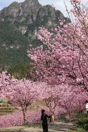 In February, cherry blossoms are in full bloom, and the cherry blossoms in the Yinna Mountain Q Scenic Area in Meixian County are in full bloom.