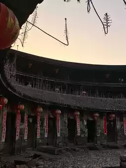 In the center of the building is a spacious circular patio, paved with pebbles and decorated with patterns of ancient coins, symbolizing wealth and good fortune. During every festival, villagers gather here to dance dragons and lions, hold banquets and sing, making the place very lively. The surrounding wells, stone mills and other relics of life silently bear witness to the past.