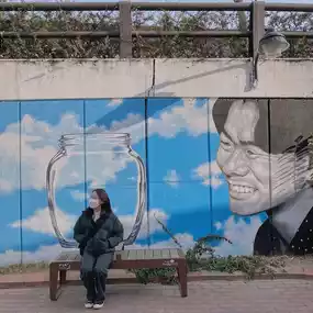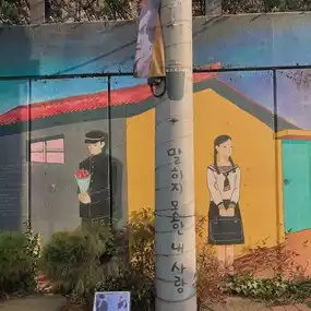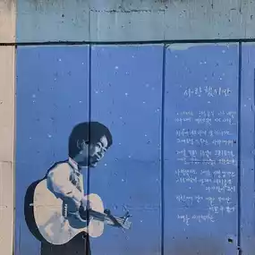 You can think of it as a mural village about the singer Kim Kwang-seok!
