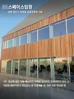 TIP. A large bakery cafe in Gyeongsan with a great interior design. The bakery has a variety of delicious food, so be sure to order. The coffee is decent.