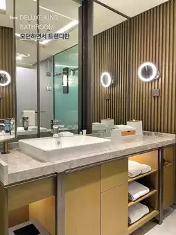 The new hotel is different, but it is definitely different. Digitalization and non-face-to-face service have accelerated even more since Corona. I like it. The room reflects the latest trends well. I can feel the convenience of Giga Genie here. It plays music, adjusts the temperature, turns off the lights, it's comfortable, comfortable.