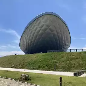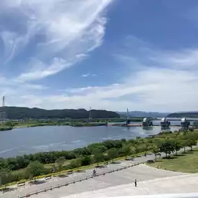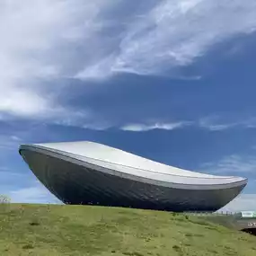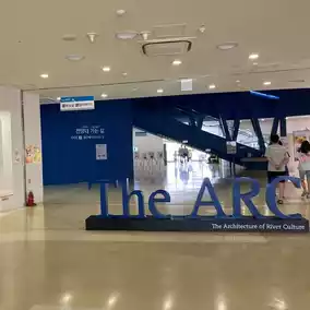 A building that simultaneously expresses the natural form of a stone throwing across the surface of the river and the shape of a fish jumping out of the water, and the traditional elegance of Korean ceramic patterns