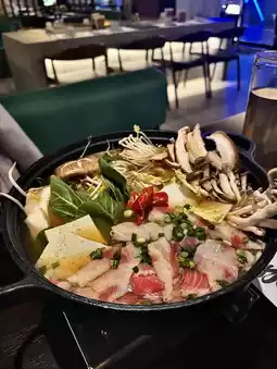 The sukiyaki was visually stunning, with generous portions of Korean beef brisket and various vegetables, and the sweet broth was superb ♥️♥️