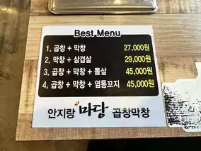 We had lunch and stopped by before our dinner appointment, so we decided to try the most basic menu and ordered the tripe and makchang set. They said that we could use the self-service bar for the side dishes that were lacking, and that we could cook the food a little more according to our taste after it came out. We like it cooked thoroughly, so we went to the bathroom to wash our hands while it was cooking. It was clean and well-managed, and we enjoyed delicious grilled tripe and makchang.