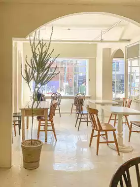 A pretty mansion cafe that feels like you've visited a lady's mansion,
