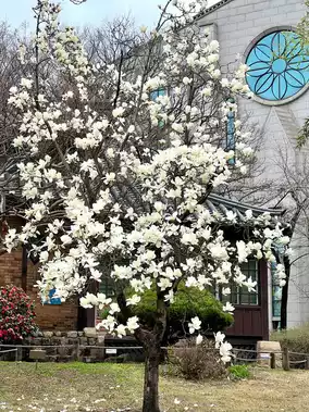 Cheongna Hill is where missionaries used to live. If you go up the 3.1 Memorial Stairs, you'll arrive! It's a spectacular sight to capture the church and magnolias in one frame!
