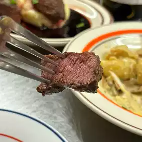 Charcoal BBQ Beef🥩 It comes with a red wine-based sauce, a ribeye steak, and mashed potatoes.