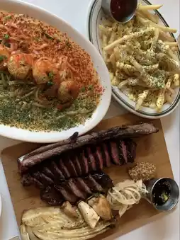 With the flavor of olive oil and garlic, mushrooms, shrimp, tomatoes, and baguette bread