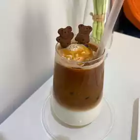 The combination of rich black sesame cream and latte! It was my first time trying this flavor, but it was delicious.