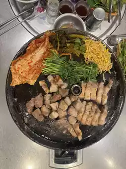 Mokgumeong offers a wide variety of menu items. In addition to basic meat dishes like pork belly and pork neck, they also offer special sets served with fresh water parsley. We ordered the pork belly, and the quality of the meat was exceptional. The meat was aged, making it tender and juicy. ✨