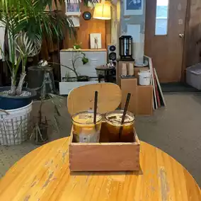 Isn't it really cute that the drinks are served in wooden boxes🥹?