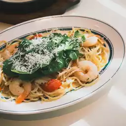 Next was the "Arugula and Shrimp Pasta", which was really amazing! The smooth texture is paired with a rich garlic aroma. I originally thought it had the aroma of butter, but it is actually the flavor of olive oil that has been emulsified. The taste is refreshing yet rich, and it is really delicious! 🍝🦐