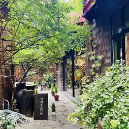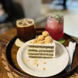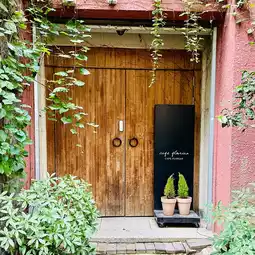 The cafe has a lot of greenery and an atmosphere that makes you forget you're in the city.