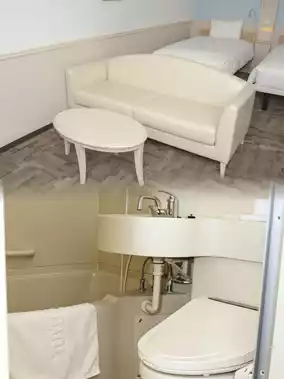 Next, let's talk about the facilities and services. Although the rooms are small, they are well-equipped with air conditioning, a flat-screen TV, an electric kettle, a refrigerator, and a private safe. I was impressed with the free Wi-Fi, which was very stable. The bathroom has complete facilities, including slippers, a hairdryer, and free toiletries, making it feel cozy and comfortable.