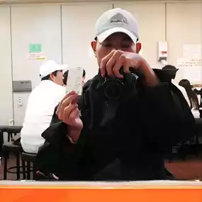 Put it in your mouth. Wow, the rice cake is so sticky.