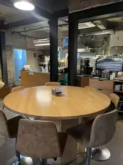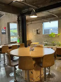 The exterior may look small, but the interior is surprisingly spacious with a variety of seating options. There's also a terrace area at the back, making it a great spot for dining outdoors on nice days. Pets are welcome too.