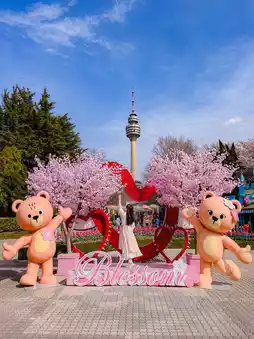 It is no exaggeration to say that the entire amusement park, where they hold a cherry blossom festival every year, is covered in cherry blossoms💖