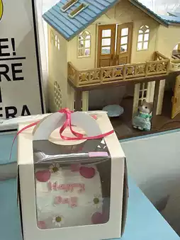 The cake is moist, and the whipped cream is 100% animal-based, making it sweet and savory.