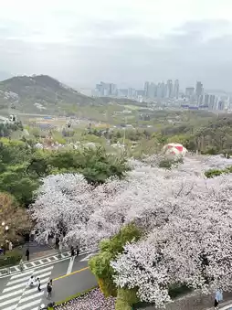 In fact, this is a very popular cherry blossom viewing spot. 🎀 Not only can you enjoy the blossoms blooming throughout the park, but if you take the ropeway to the top, you can see a path of cherry blossoms in full bloom. 🤍✨🫶🏻 Furthermore, if you climb the 83 Tower, located next to the summit, you'll find plenty of beautiful cherry blossoms. 🌟