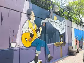 Kim Kwang-seok Street is a charming mural street dedicated to the legendary Korean singer-songwriter Kim Kwang-seok. The street features various murals, unique shops, and cozy cafes, all while playing Kim Kwang-seok's iconic music.