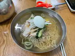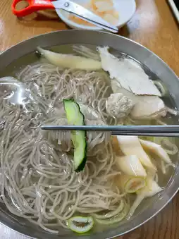 It's great to eat cool Pyongyang Naengmyeon and the restaurant's special dumplings together in the hot summer :)