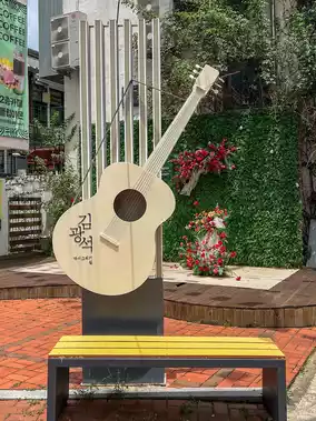 Walking through Kim Kwang-seok's Mural Street, though only 350 meters long, feels like stepping back in time. The nostalgic melodies playing from speakers along the alley create a healing and emotional experience, as if Kim Kwang-seok himself were singing to you. While it may not be a grand or expansive street, it is a meaningful space to create memories with friends or loved ones. For fans of Kim Kwang-seok's music, this place will undoubtedly leave a lasting impression.