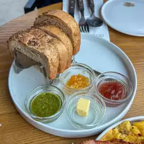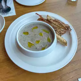 Loewe Flores' signature menu, Loewe Bacon Plate (22,000 won), is a popular menu that many visitors always order. It is plated carefully, so it looks great, and it is popular for its rich taste of bacon and scrambled eggs. Truffle Mushroom Soup (8,000 won) is served with rye bread sticks and boasts a deep flavor. It is a menu that captures both the aroma and flavor of the rich mushroom soup with truffle oil.